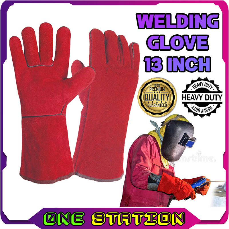 1 Pair Of 13 16 Welding Leather Hand Glove Safety Work Gloves Sarung Tangan Kimpalan Shopee Malaysia