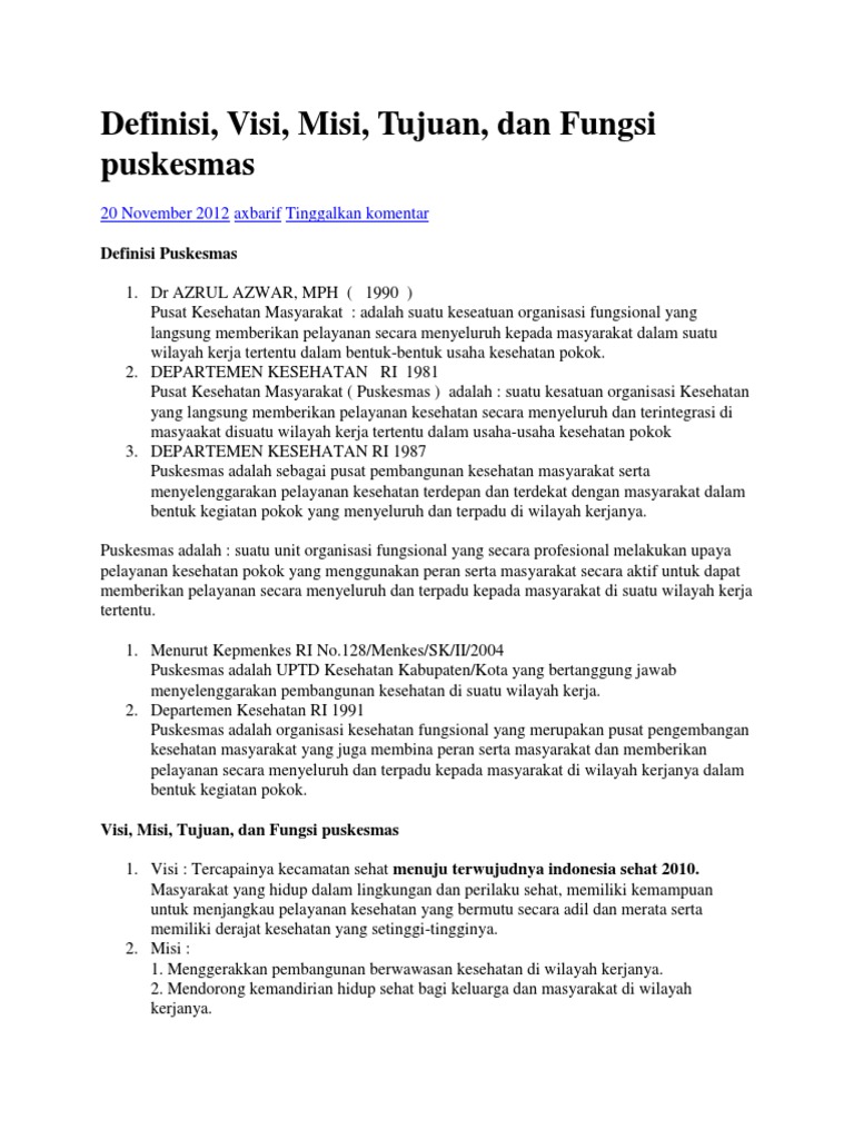Ada sejumlah definisi menganai puskesmas baik dari Departemen Kesehatan maupun dari sekian banyak ahli. INSPEKSI KESEHATAN LINGKUNGAN DAMIU. Peraturan Pemerintah Nomor 66 Tahun 2014 tentang Kesehatan Lingkungan Lembaran Negara Republik Indonesia Tahun 2014 Nomor 184 Tambahan.